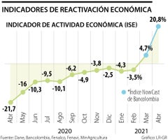 De acuerdo con los últimos resultados del Índice NowCast de Bancolombia, se prevé que la economía colombiana haya crecido 20,8% en abril, la cifra más alta desde el inicio de la pandemia. Sin embargo, algunos expertos temen que tanto las manifestaciones como la tercera ola de contagios por covid-19 frenen la reactivación y, por lo tanto, el crecimiento económico.